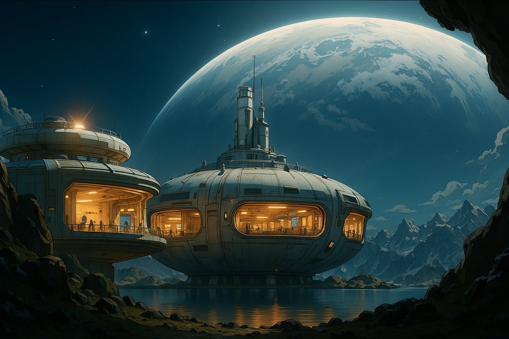 The vessel rose from the base camp in silence, cutting a clean line through clouds that did not resist. Below, the dome shrank into starlit memory a circle built for return, now left behind. He did not expect company. He did not ask for it. He had been alone before. He would be alone again.